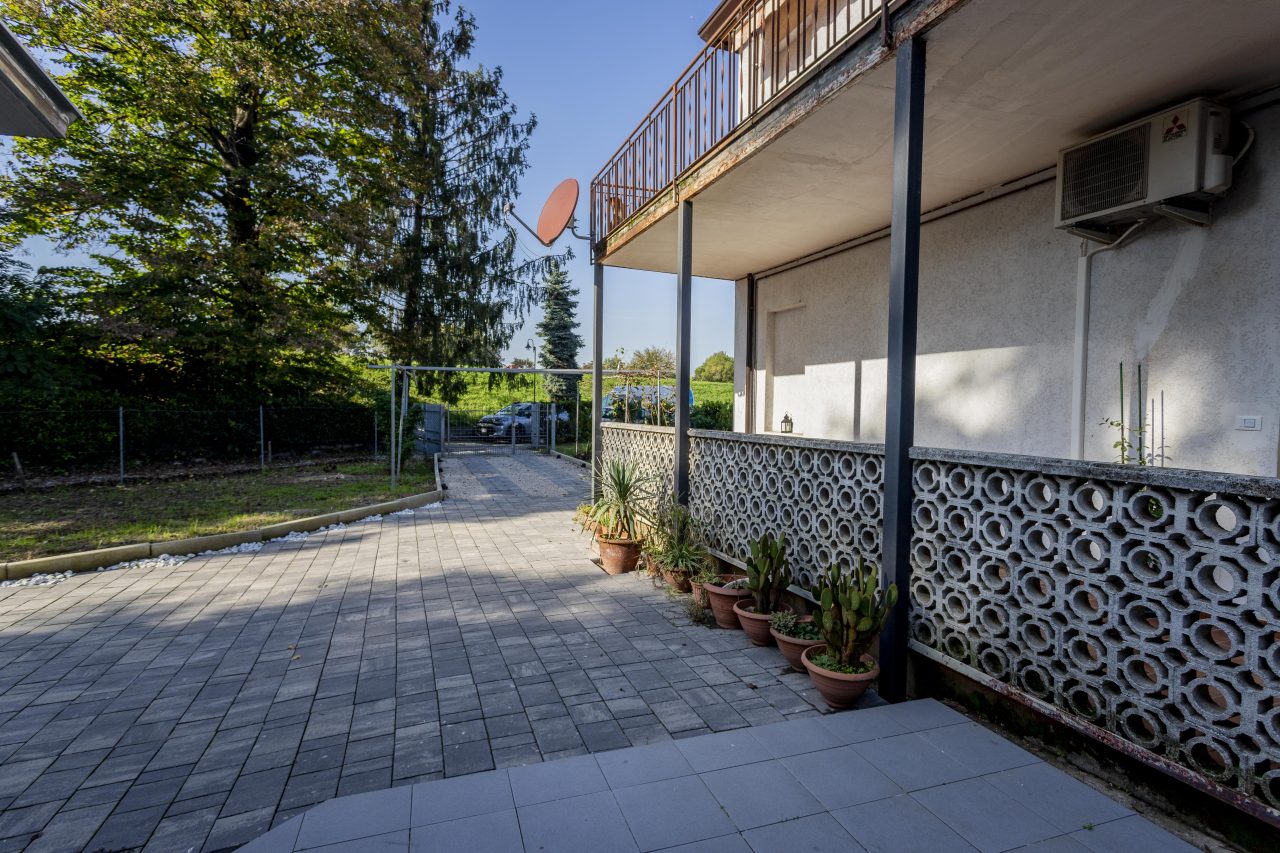 L’immobile vanta uno scoperto privato circondante che include accessi pedonali e carrai indipendenti, assicurando massima privacy e autonomia agli abitanti.