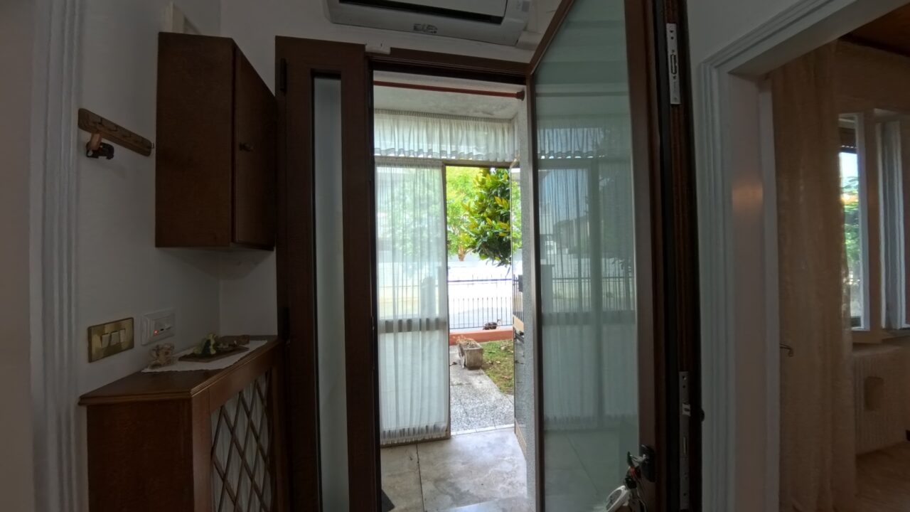 All’esterno, il giardino privato di circa 150 mq diventa uno spazio prezioso da vivere nella bella stagione: c’è anche un piccolo portico, perfetto per colazioni all’aria aperta, momenti di lettura o semplicemente per godersi il silenzio e il verde.