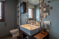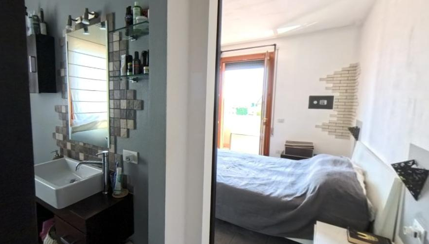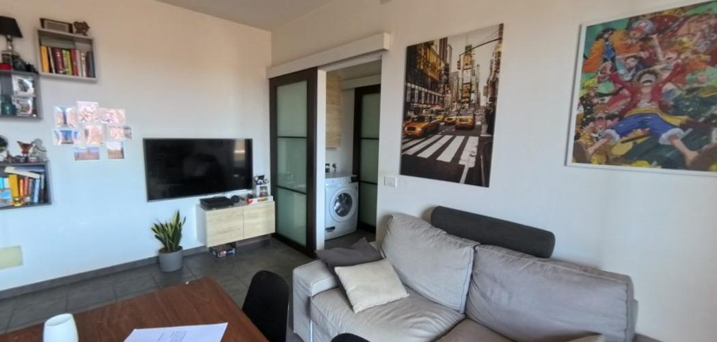 L’appartamento è un bilocale dalle linee moderne, arredato con gusto e completo di tutto, compresa la lavatrice. Entrando, si viene accolti da una zona giorno luminosa con angolo cottura e accesso diretto a un terrazzo, ideale per godersi il sole o una cena all’aperto. La zona notte comprende una spaziosa camera matrimoniale con poggiolo privato, un bagno finestrato con box doccia in vetro e un comodo ripostiglio.