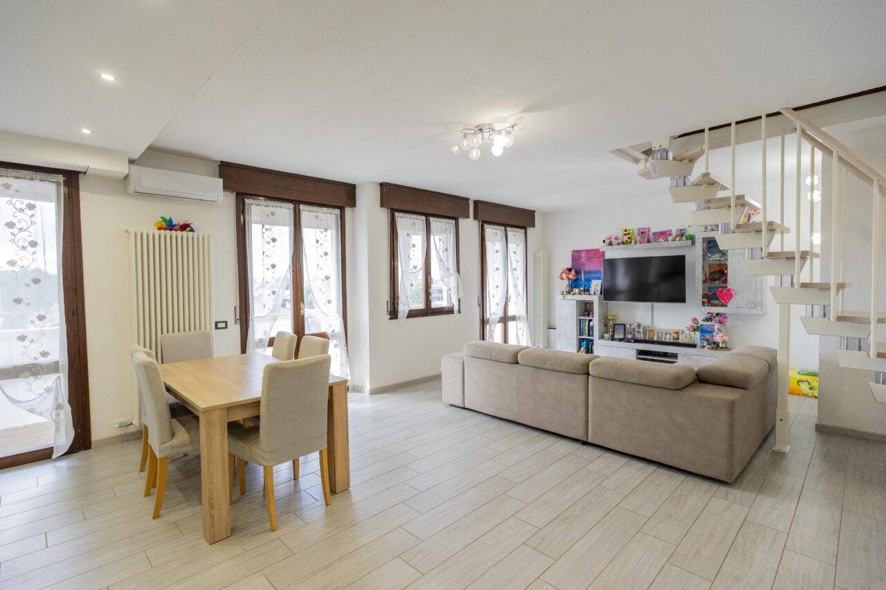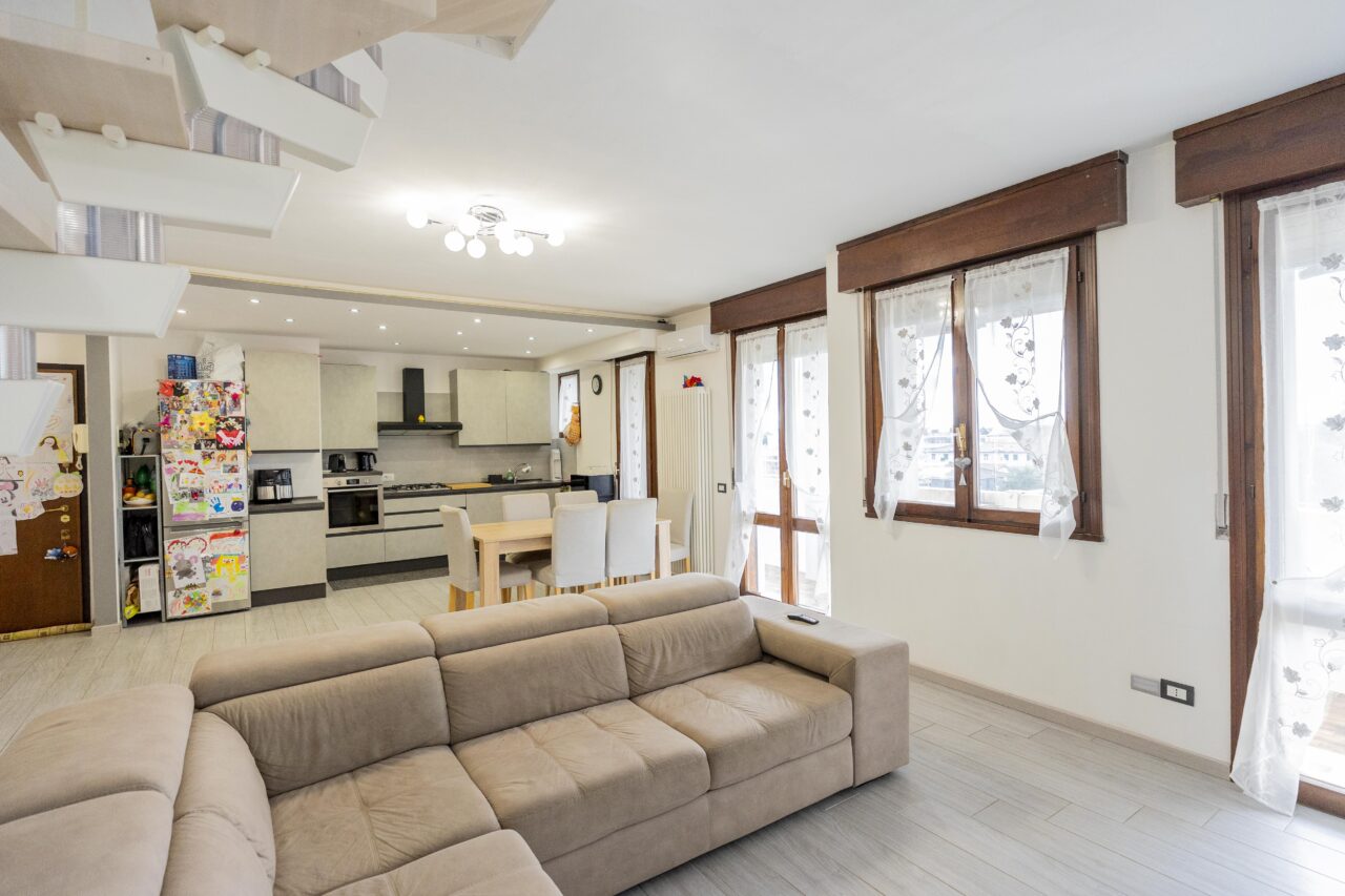 Immagina di vivere nel cuore di Rubano, in un elegante appartamento duplex che conquista al primo sguardo. Situato all’ultimo piano di una palazzina servita da ascensore, questo attico di 160 mq unisce il comfort moderno al calore di una vera casa accogliente. Varcando la porta blindata si viene accolti da una luminosa zona giorno in open space, dove la cucina arredata dialoga armoniosamente con il soggiorno, creando un ambiente perfetto sia per i momenti in famiglia che per le serate con gli amici. Un terrazzo regala uno spazio all’aperto ideale per rilassarsi o concedersi una colazione al sole. La zona notte è ben distribuita, con due camere da letto e due bagni che garantiscono privacy e praticità a tutta la famiglia. Una mansarda ampia e versatile dove si può ricavare la terza camera o ideale come studio, area hobby o stanza relax, aggiunge un tocco di esclusività e infinite possibilità di personalizzazione. Non mancano dettagli che fanno la differenza: aria condizionata, zanzariere, canna fumaria per chi sogna il camino e un comodo ripostiglio che semplifica la quotidianità. Completa la proprietà un garage privato, pensato per la massima comodità. Una soluzione abitativa che unisce spazi generosi, posizione centrale e comfort moderni: il luogo ideale dove sentirsi davvero a casa. Chiamaci ora per prenotare la tua visita! |