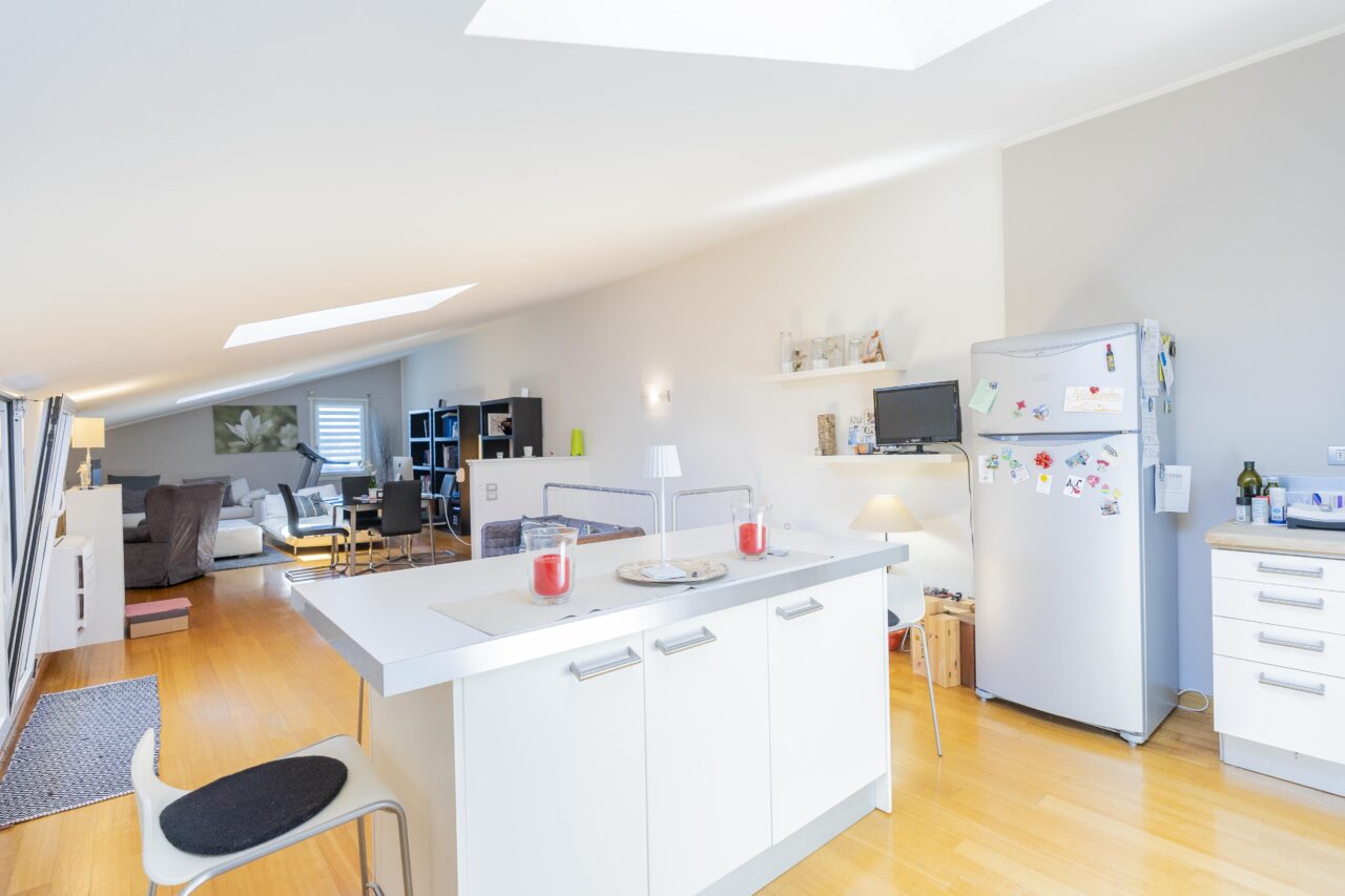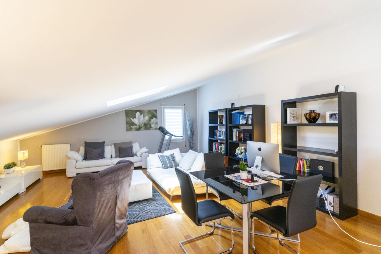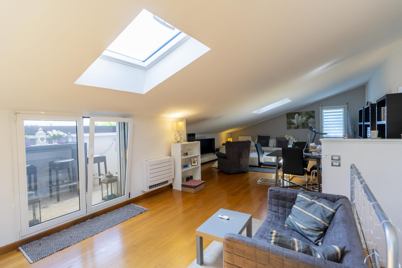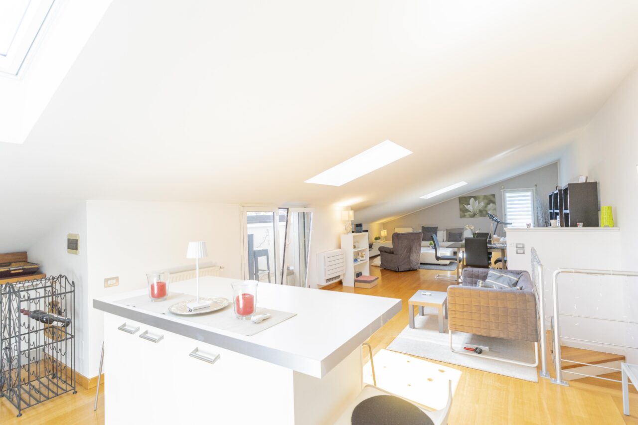 Questa abitazione di 140 mq, distribuita su due livelli, regala un’atmosfera calda e accogliente sin dal primo sguardo. Al piano superiore si apre un ampio open space mansardato, dove la cucina si fonde armoniosamente con la zona living, creando un ambiente ideale da vivere. Da qui si accede ad un luminoso terrazzo, perfetto per momenti di relax, già dotato di tende da sole elettriche per garantirvi comfort in ogni stagione.