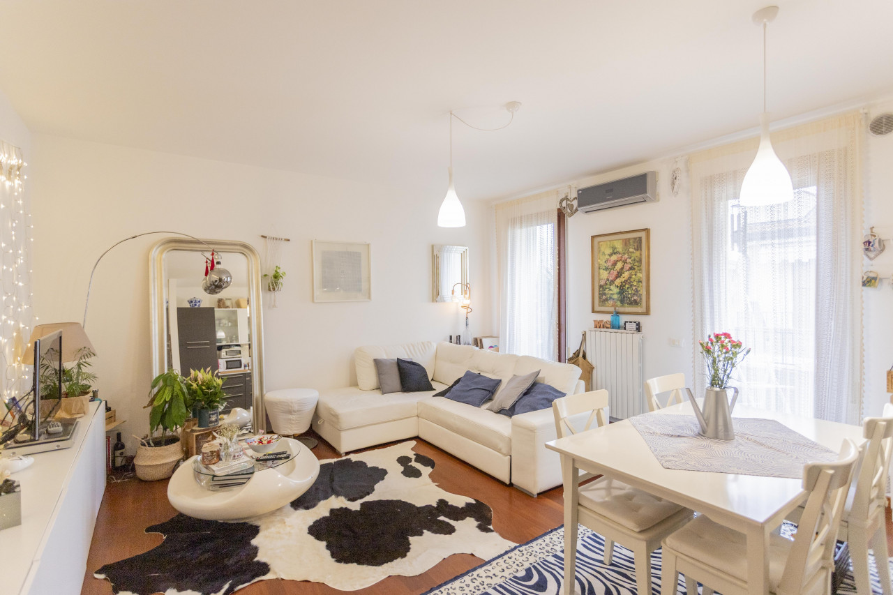 Varcando la soglia, si viene accolti da un ampio soggiorno con angolo cottura, un ambiente luminoso e accogliente, pensato per adattarsi a ogni momento della giornata, dalle tranquille colazioni alle serate in famiglia o con amici. Le due camere da letto, spaziose e ben illuminate, offrono il giusto spazio per il riposo e la privacy, mentre i due bagni, moderni e funzionali, soddisfano ogni esigenza quotidiana.