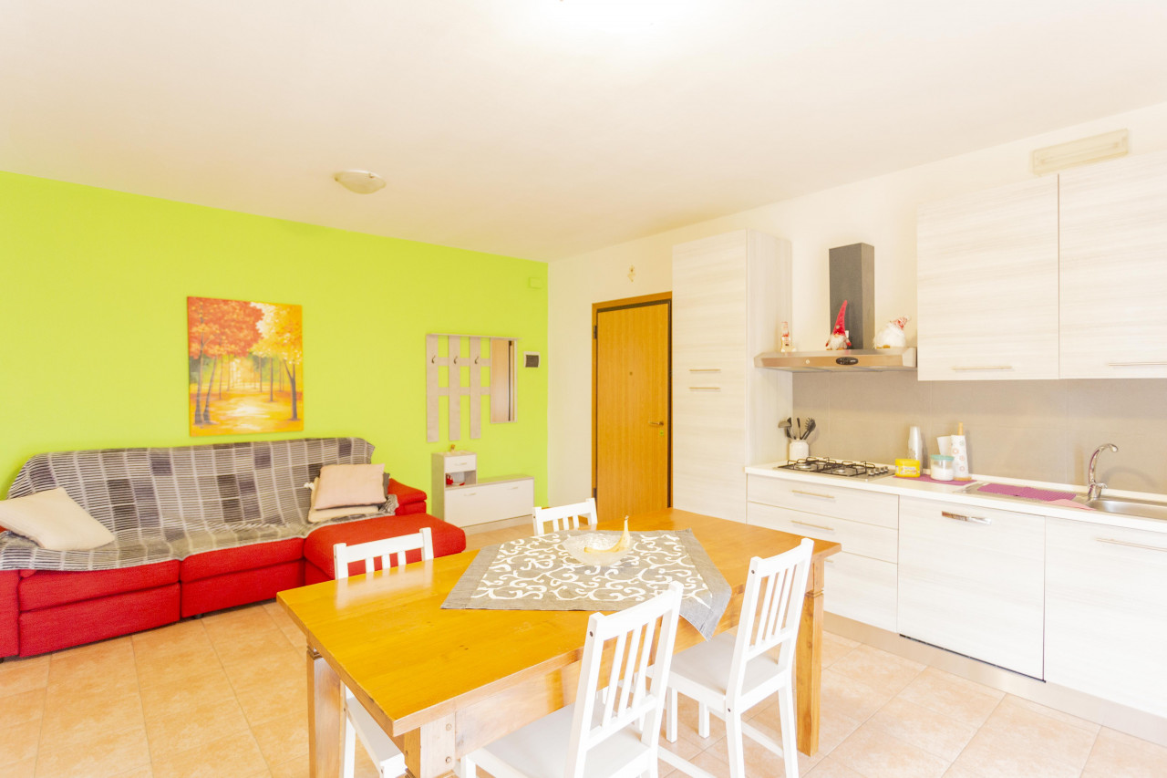 L’appartamento si trova al primo piano ed è caratterizzato da un design moderno e funzionale. Entrando troverete un ampio open space accogliente che integra la zona soggiorno con una cucina attrezzata; uno spazio perfetto per trascorrere momenti conviviali con famiglia o amici mentre ci si dedica ai piaceri della buona tavola. Il poggiolo affacciato sul giardino di circa 1000 mq porta luce naturale nell’ambiente creando un’atmosfera calda e invitante.